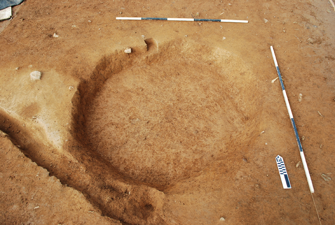 We uncovered numerous new features dating from the 20th century back into prehistoric Native American times. Modern gas and electric lines crisscrossed the site on their way to a now-demolished early 20th century house. They cut through multiple historic layers and sometimes through intact earlier features. Eighteenth century features we excavated included a large, circular, flat-bottomed pit, 5 feet in diameter. The pit’s purpose is still under investigation. A 10-foot long linear feature, obviously related to last year’s still unknown Features 274 and 275, was also found just to their northwest, adding to their mystery.