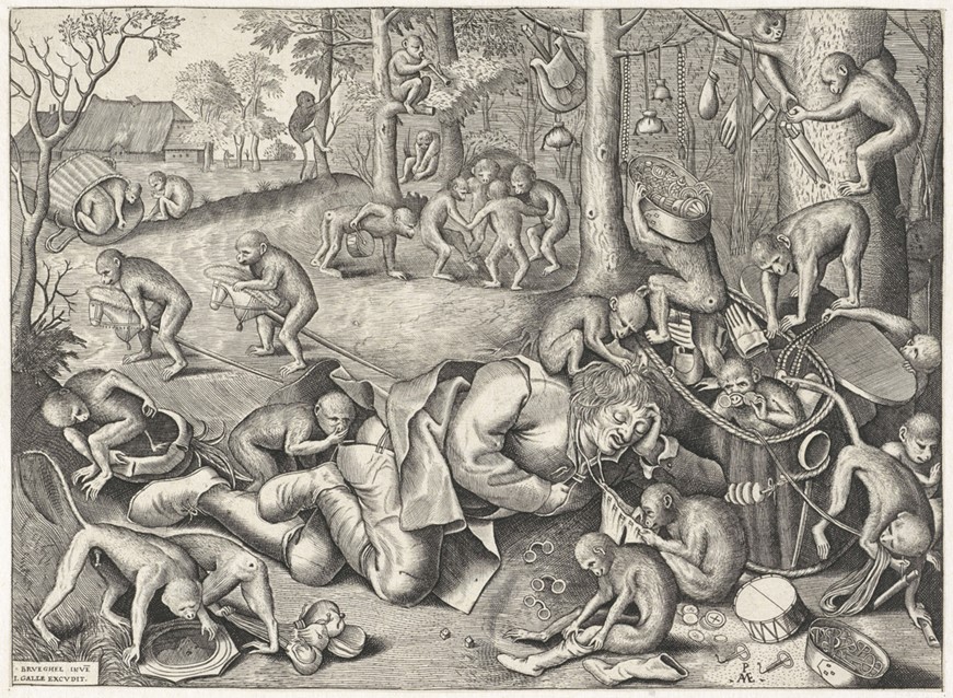 The history of jaw harps dates beyond the fifth century BCE in Asia. Archaeological evidence places the instrument’s arrival in Europe around 1200, with the migration occurring along northern routes through the Baltic. Due to their mundane nature, jaw harps rarely appear in historic accounts or art. Two exceptions include Pieter Bruegel the Elder’s The Sleeping Peddler Robbed by Monkeys (1562), which helps identify peddlers as the main purveyors of jaw harps, and accounts of the North Berwick Witch Trials (1590-1592), where one of the accused performed for James VI of Scotland. Witches aside, the most common players at this time included the lower classes and soldiers.