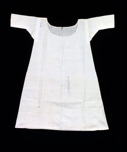 Stays were not worn up against the skin. No matter what the covers of romance novels or the saucy scenes in period dramas portray, there was always a layer of clothing between the woman and her support garment. Laundry was not as simple as throwing everything into a machine and hitting start in the 18th century. Therefore, women wore foundational garments called shifts that were washed frequently and protected outer garments like gowns and stays that were not washed as often. A shift was a nightgown-like garment usually made of linen. This was considered your base layer. It absorbed sweat and oils, protecting the rest of the clothing and stays from the elements of the body.