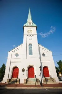 The assemblage of Masonic Brethren, civil authorities, military officers, Lafayette, and company was escorted to St. George’s Episcopal Church to enjoy an excellent discourse delivered by the Reverend Edward C. McGuire, also a Mason.