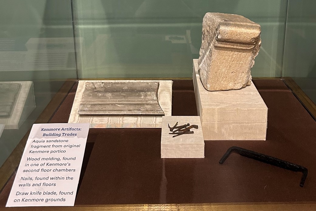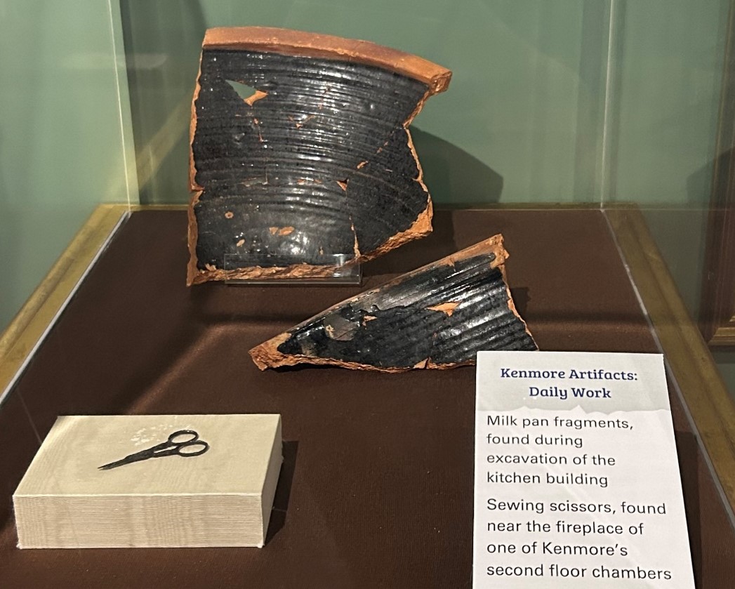 Recently, we pulled a few of Kenmore’s artifacts into exhibit cases in our refreshed orientation exhibit in the Bissell Gallery of the Crowninshield Education Center at Historic Kenmore. Together with in-ground archaeology, these exhibit cases help us illustrate the built environment and the wares known and used at the site.