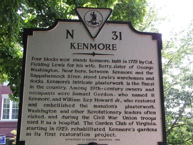 Former director of the Kenmore Association (now the George Washington Foundation) Vernon Edenfield wrote to the DHR proposing the marker. The Association paid for the manufacturing out of pocket. You can now visit it along Caroline St, four blocks from Kenmore, in front of Fielding Lewis’ storefront.
